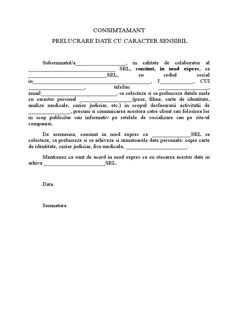 Consimtamant Colaborator Date Sensibile Model 11