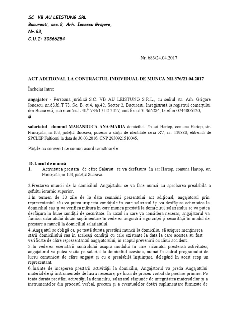 Model De Act Aditional Pentru Majorarea Salariului Minim Brut Pe Economie