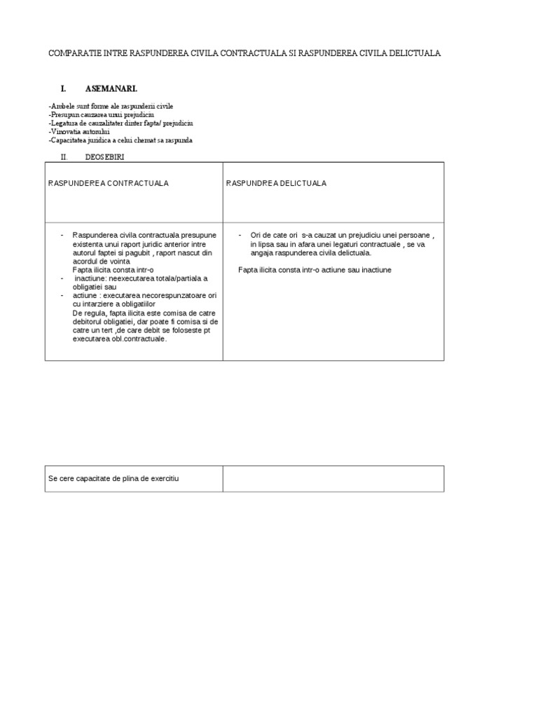 Comparatie Intre Raspunderea Civila Contractuala Si Raspunderea Civila Delictuala
