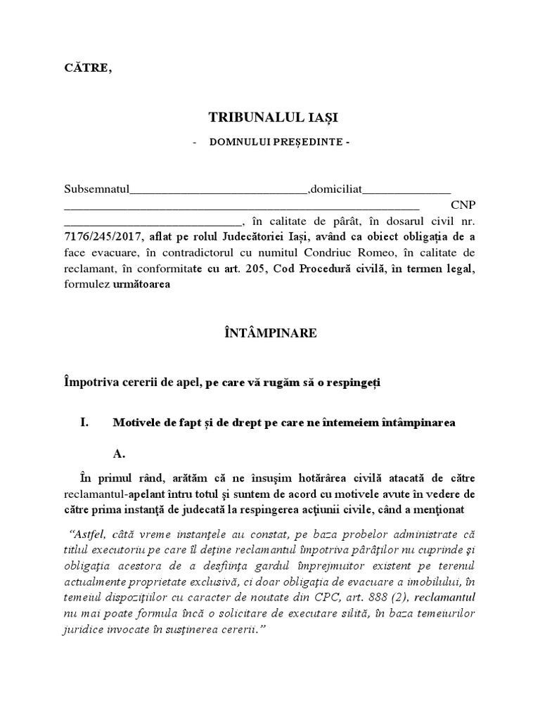 Art 205 Scopul și Cuprinsul Intampinării Codul De Procedură Civilă Lege5 Ro