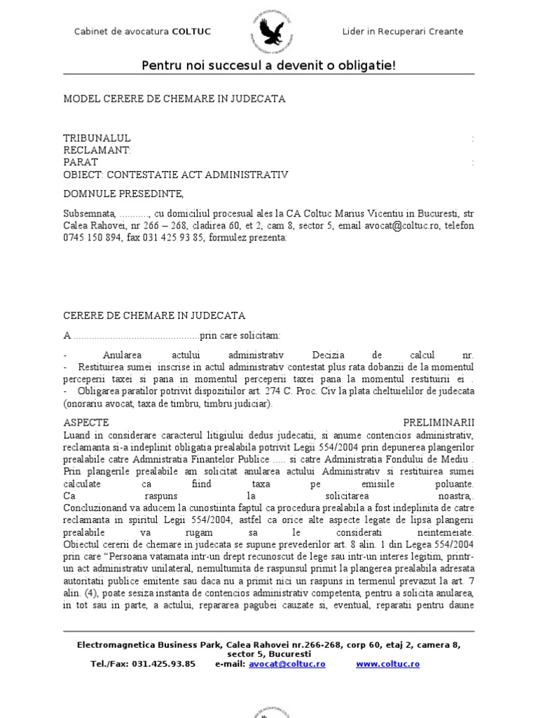 Valter Cojman Model Cerere Chemare In Judecata Cass 5 5 Model Cass