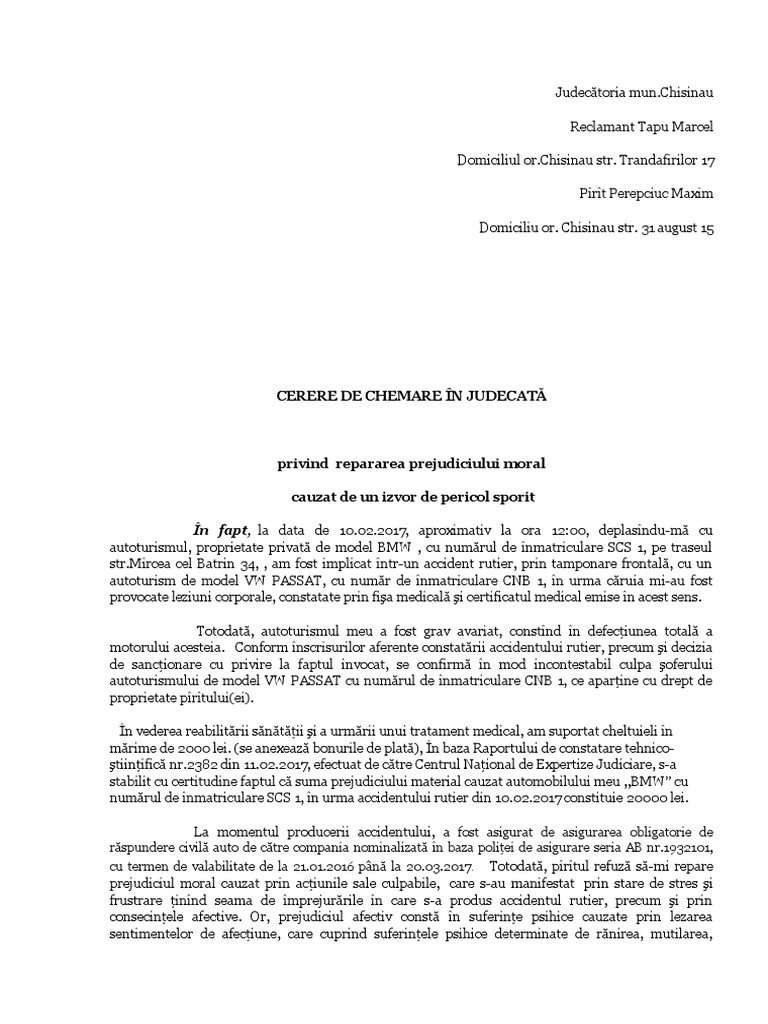 Cerere De Chemare In Judecata Model Md