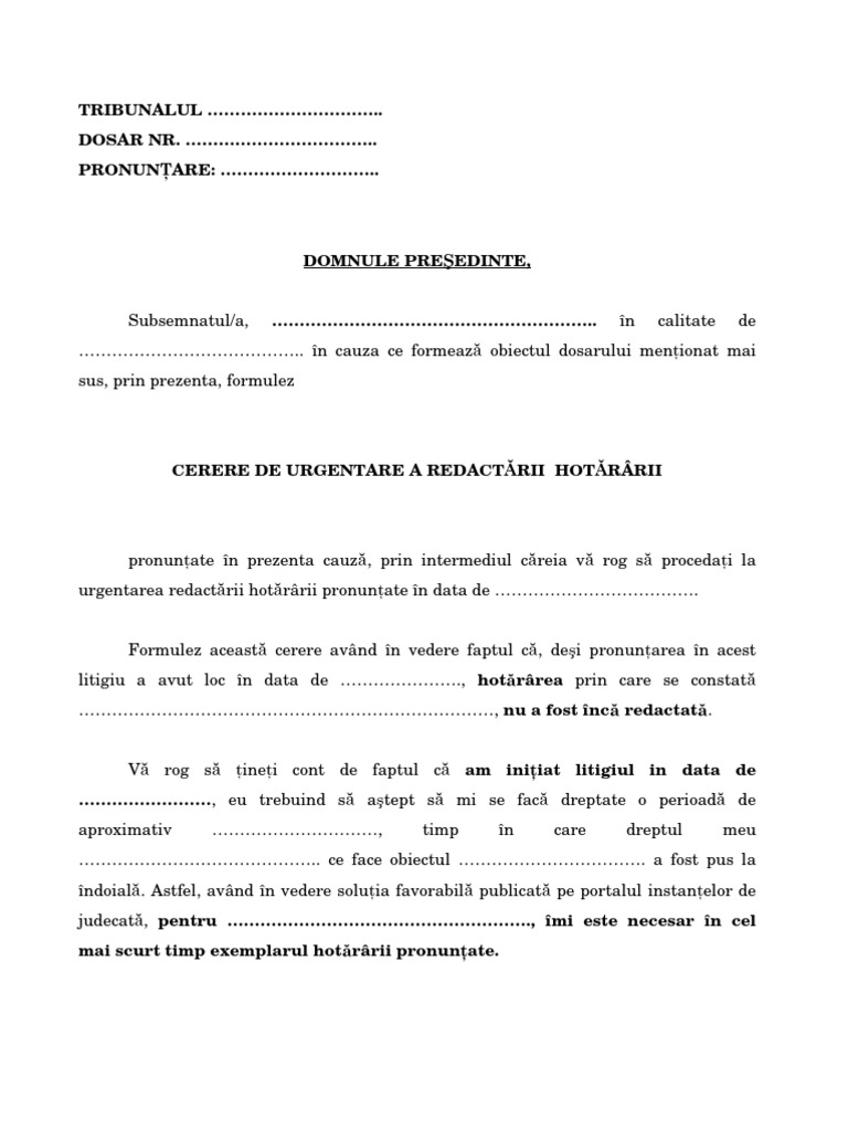 Model De Cerere Urgentare Editare Sentinta