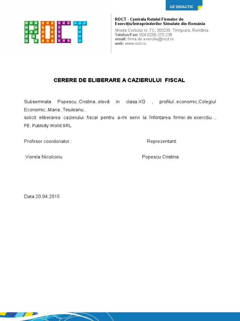 Cerere Tip De Eliberare Certificat Cazier Fiscal
