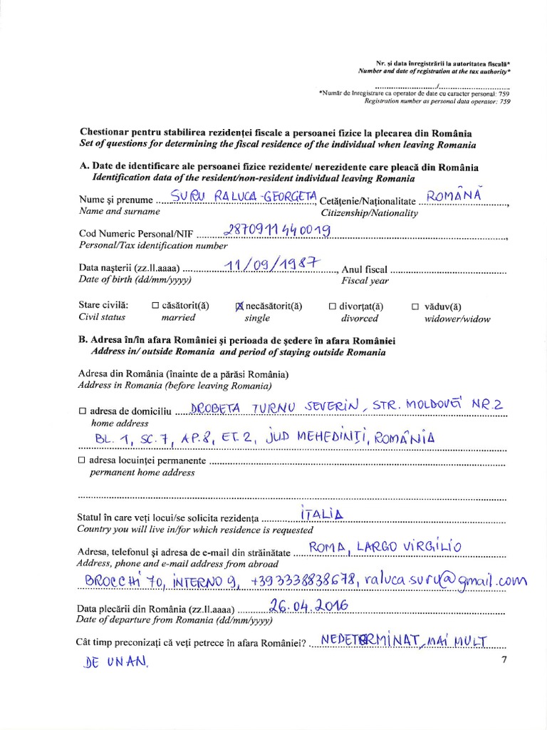 Chestionar Pentru Stabilirea Rezidentei Fiscale A Persoanei Fizice La Plecarea Din Romania Polish Connection Rozliczenie Zwrot Norweskiego Podatku Polish Connection Rozliczenie Zwrot Norweskiego Podatku
