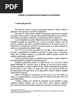 Limitele Convenţionale Ale Dreptului De Proprietate