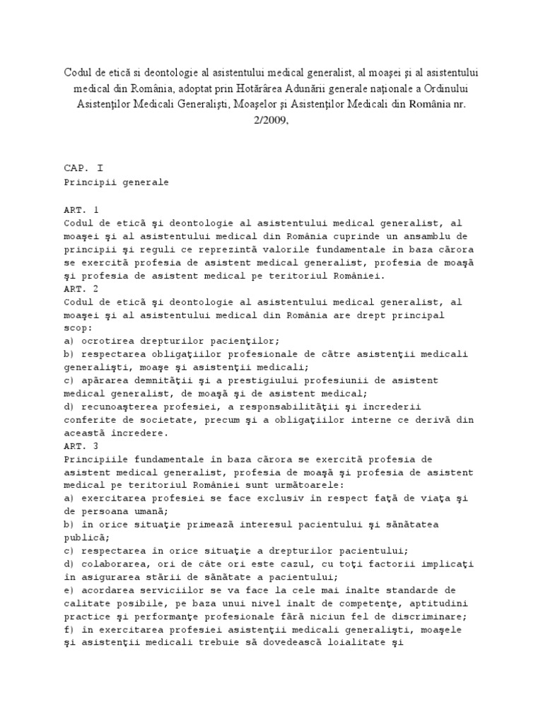 Codul De Etica Si Deontologie Al Asistentului Medical Generalist