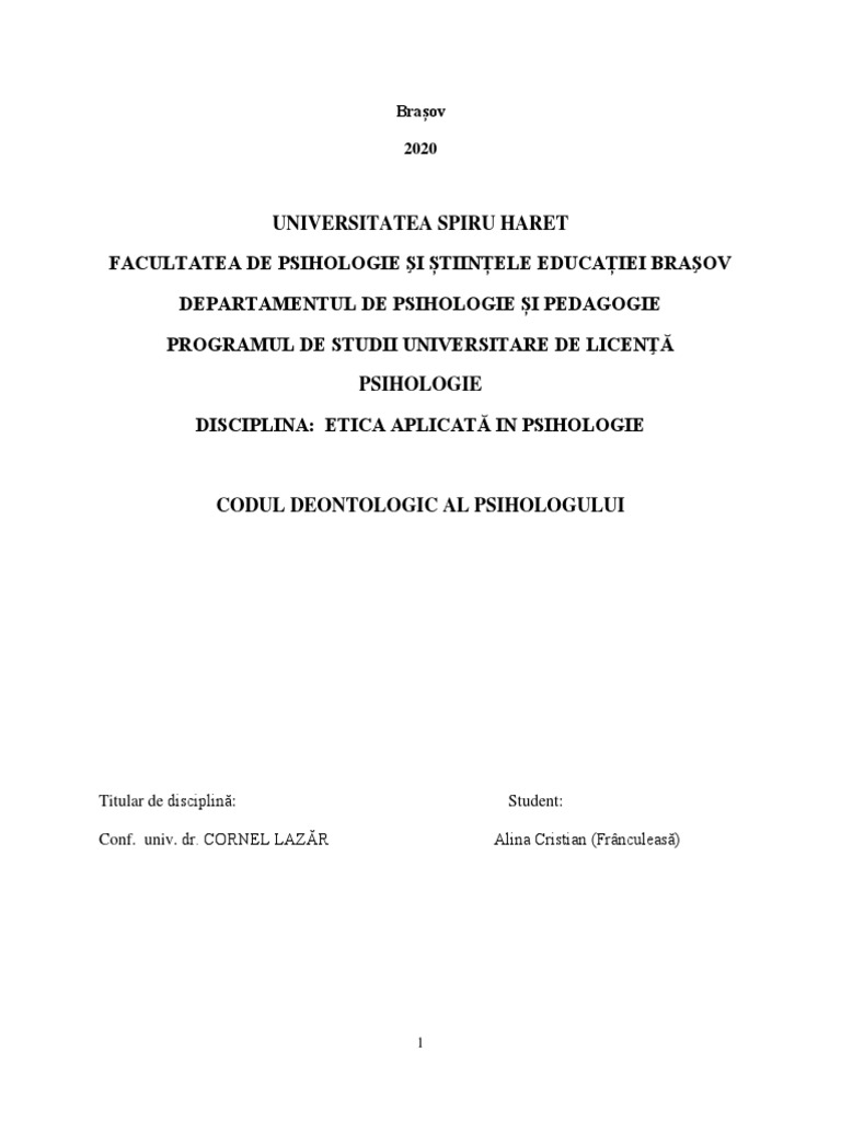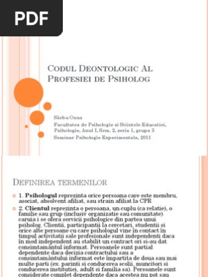 Curs Codul Deontologic Al Profesiei De Psiholog Psihologie 8301