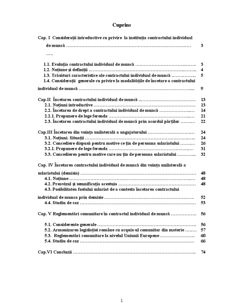 Referat Incetarea Contractului Individual De Munca Drept 174099