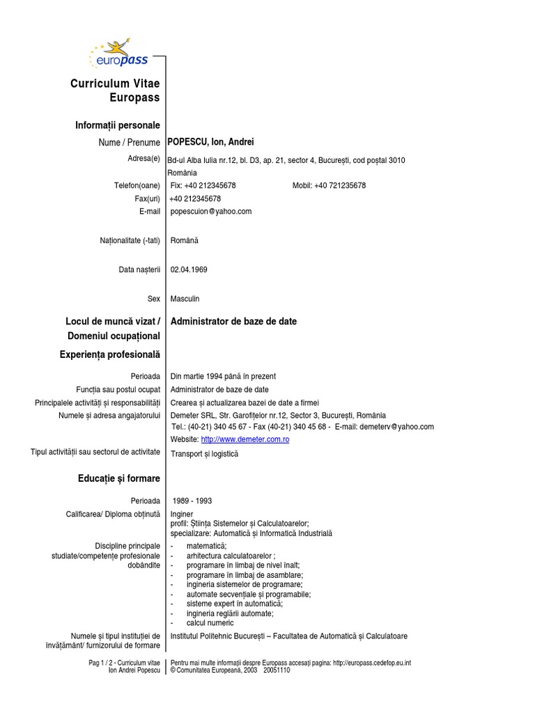 Model De Curriculum Vitae European