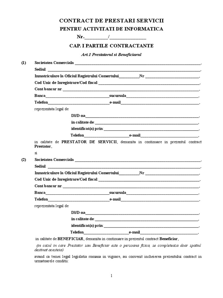 Contract De Prestari Servicii Informatica Realizare Pcon174