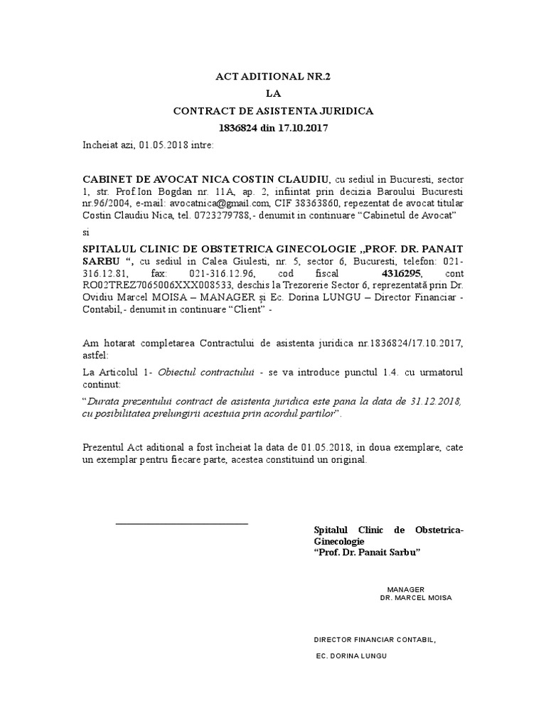 Act Aditional Nr 2 La Contractul De Asistenta Juridica Panait Sirbu Prelungire