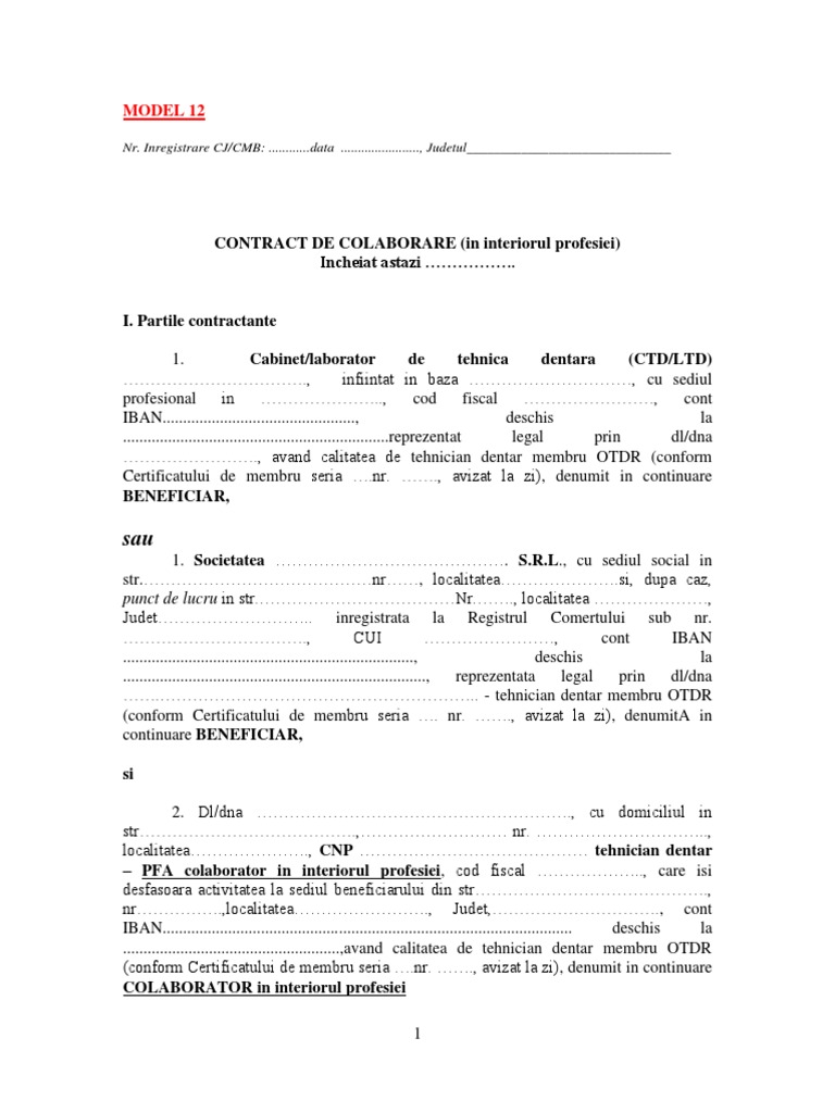 Model 12 Contract De Colaborare Pfa Debutant Cabinet Individual Srl Model Orientativ