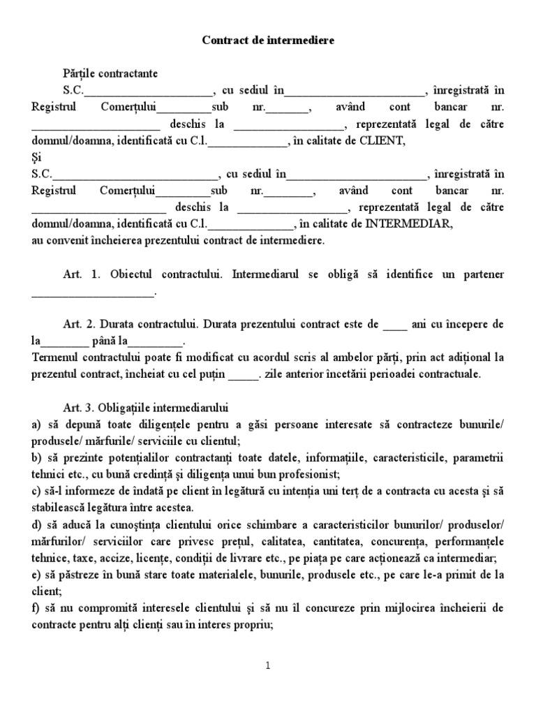 Contract De Intermediere Model