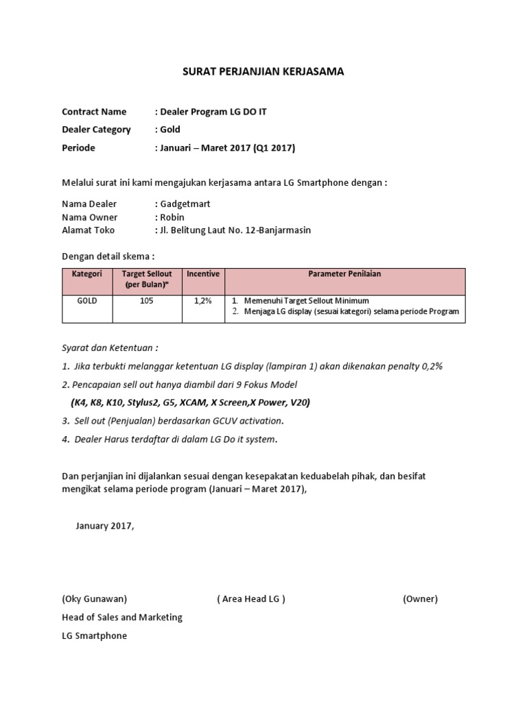 Surat Perjanjian Kerjasama Lg Doit Revisi Gadgetmart