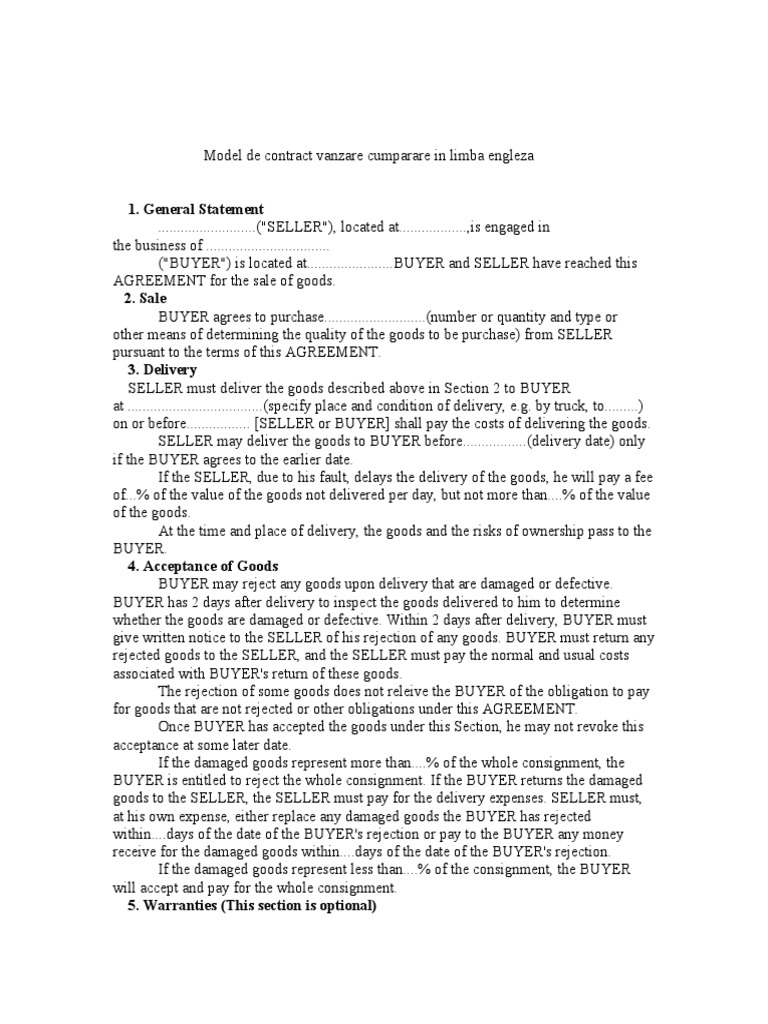 Contract De Vanzare Cumparare In Limba Engleza Business Economies