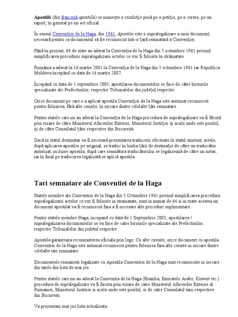 Certificarea Documentelor Cu Apostila Prevăzută De Convenţia De La Haga Tribuna Us