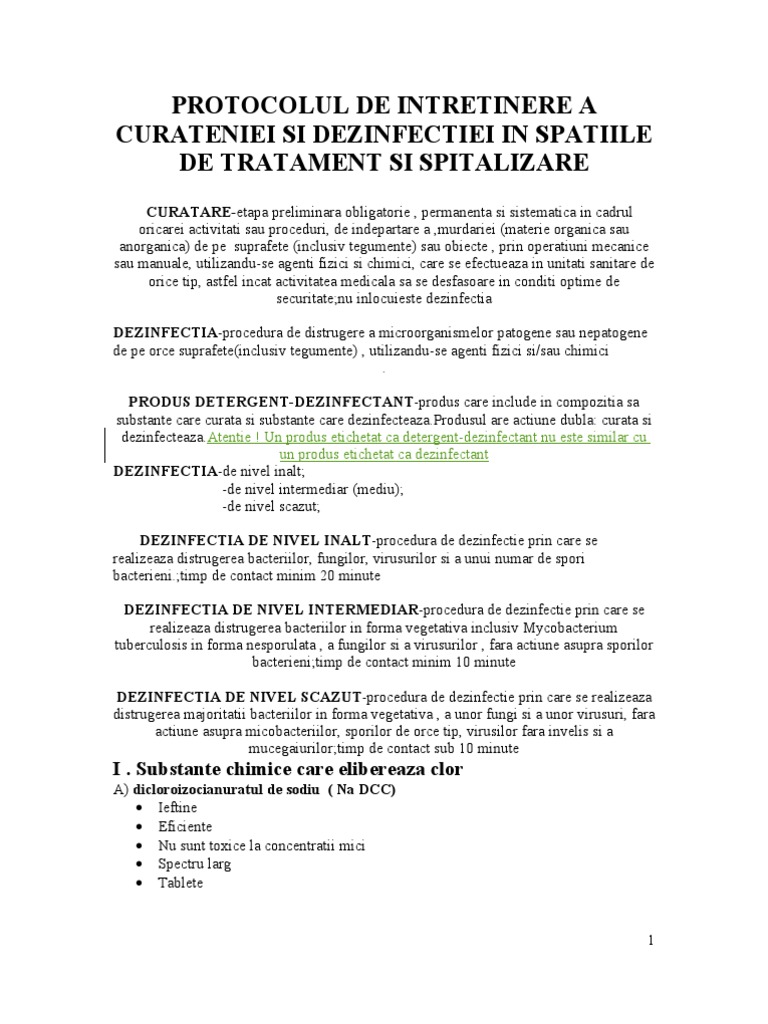 Norma Tehnica Privind Curatenia Si Dezinfectia In Unitatile Sanitare