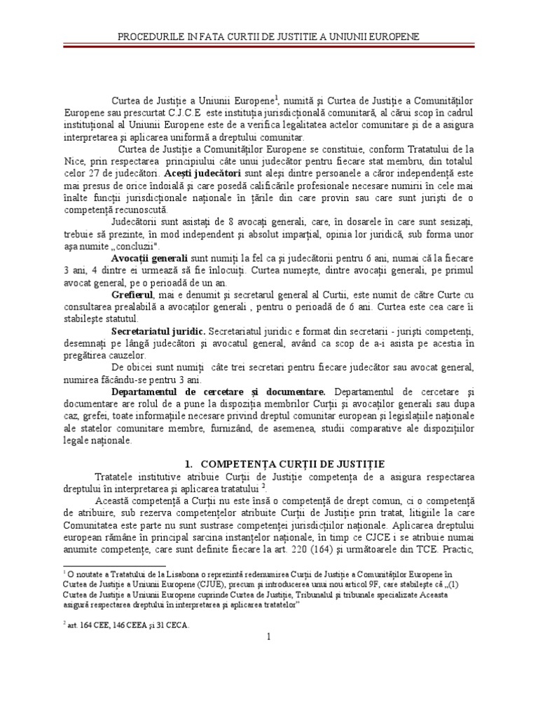 Referat Procedurile In Fata Curtii Europene De Justitie