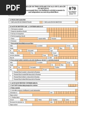 Mfinante Declaratia 070 Declaratie Mentiuni Ptr Pfa Sau Prefesii Libere