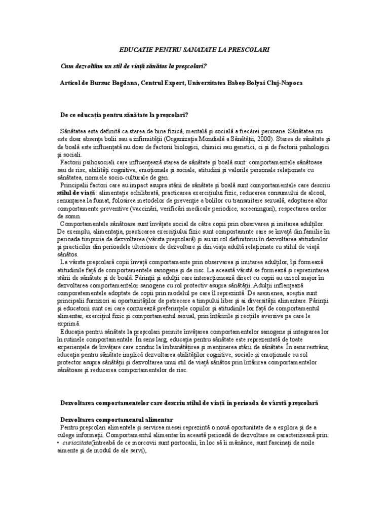 Educatie Pentru Sanatate Prescolari
