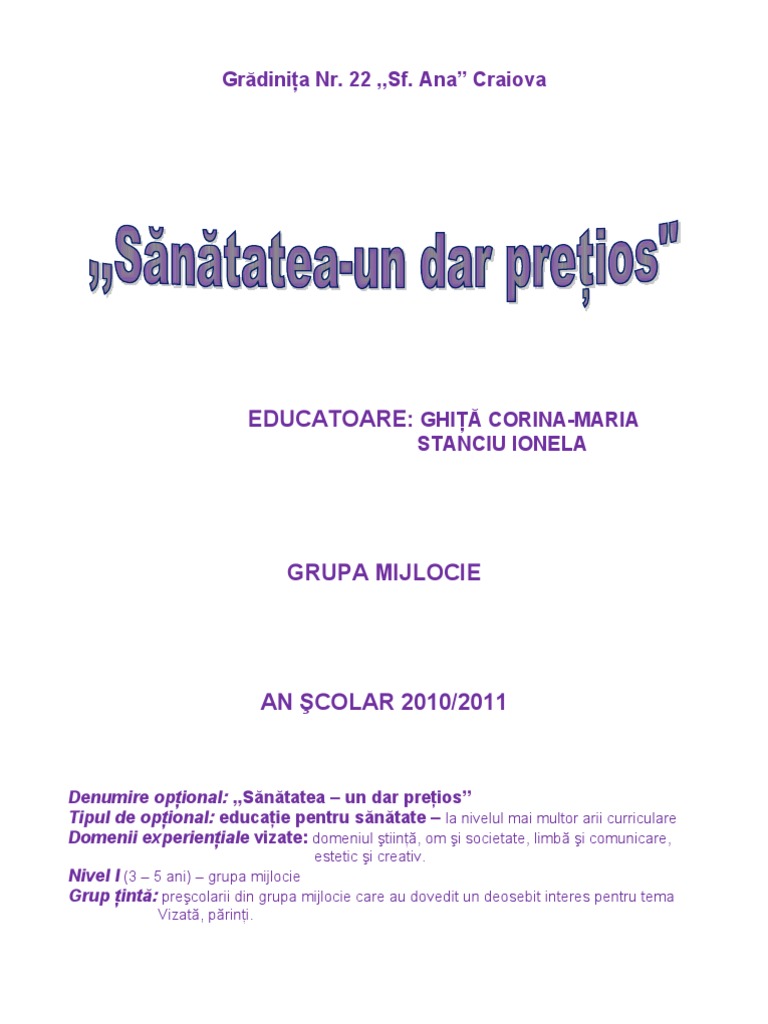 Proiect Didactic Educatie Pentru Sanatate Gradinita Modalitati De A Slabi