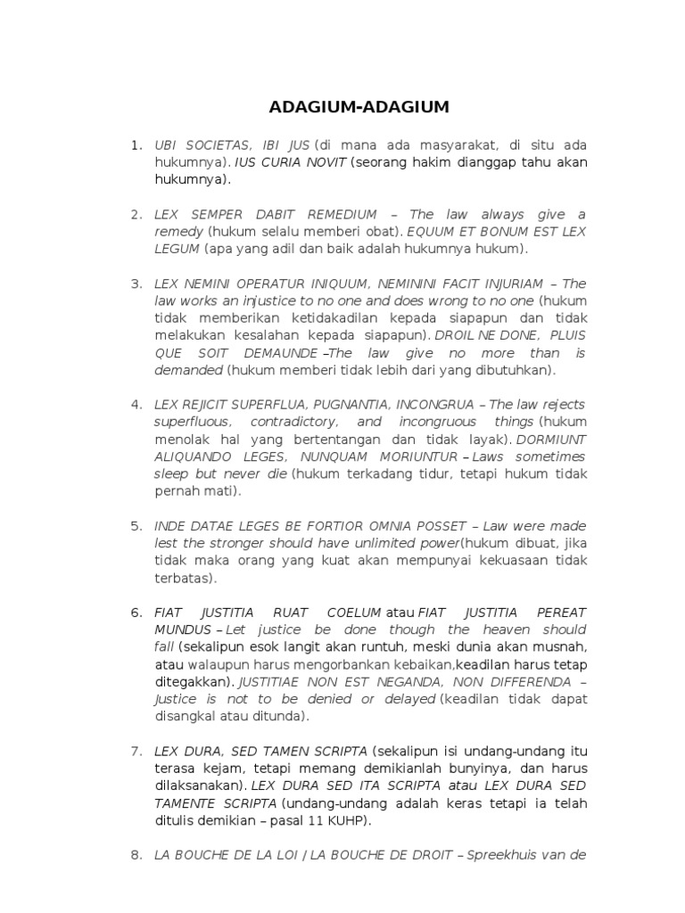 Beberapa Kumpulan Adagium Hukum Dari Berbagai Bahasa
