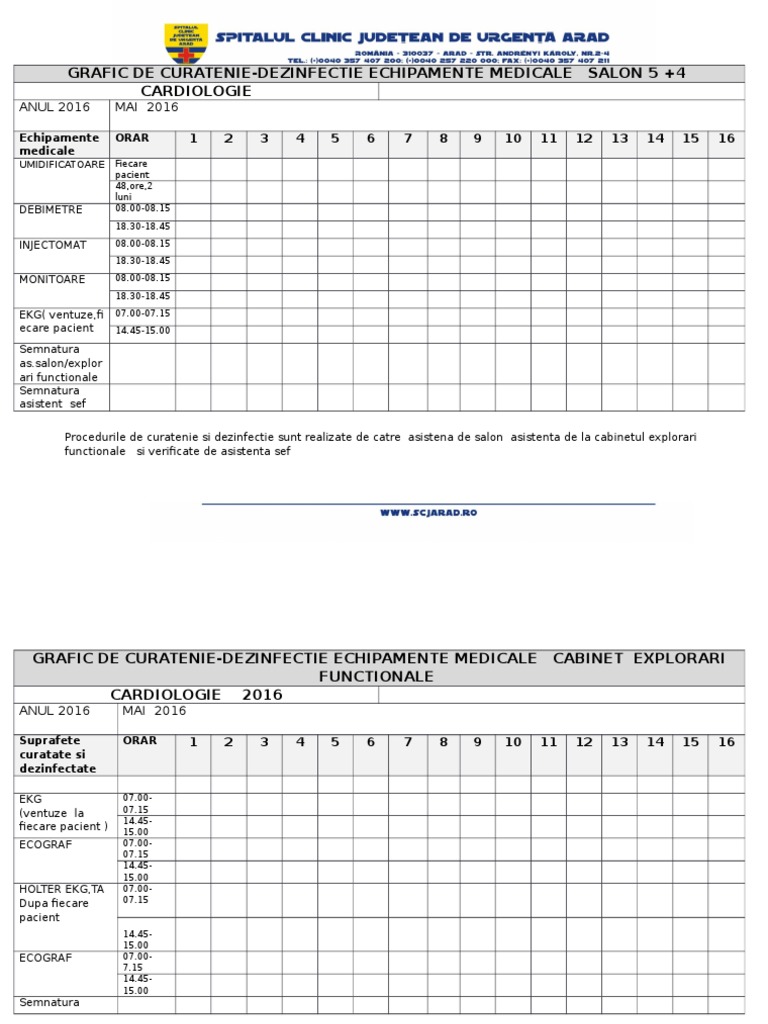 Tabele Curatenie Echipamente Medicale Mai 2016