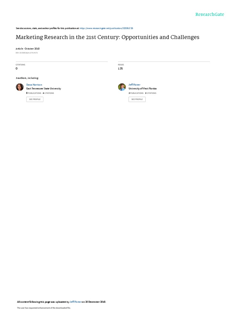 Pdf Marketing Research In The 21st Century Opportunities And Challenges