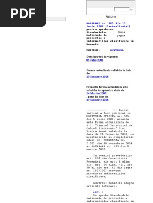 Hotarare Nr 585 Din 13 Iunie 2002 Actualizata