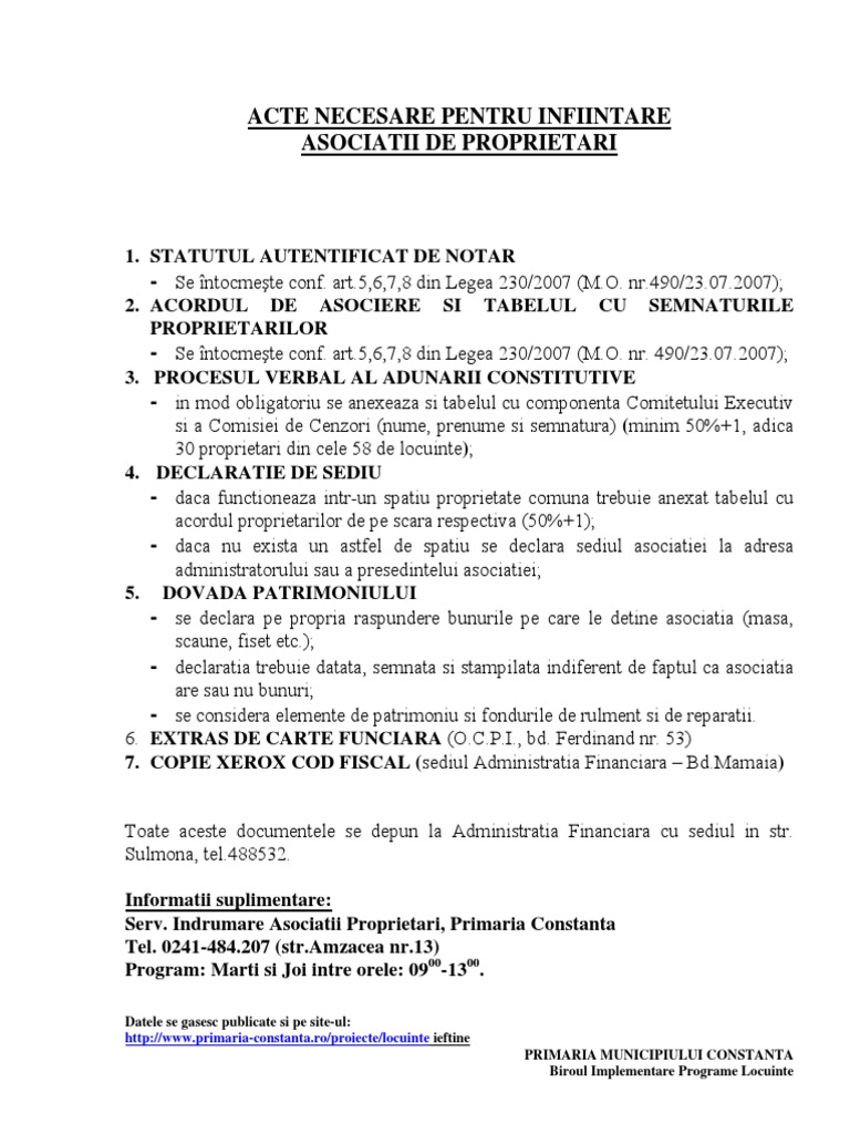 Infiintare Asociatie Proprietari Infiintare Asociatie Proprietari