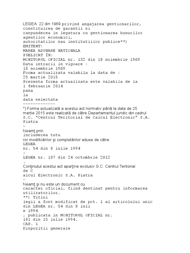 Legea 22 Din 1969 Privind Angajarea Gestionarilor