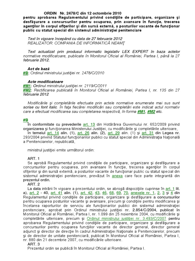 Statut Politist De Penitenciar Forma Finala Promovata De Mj Ii