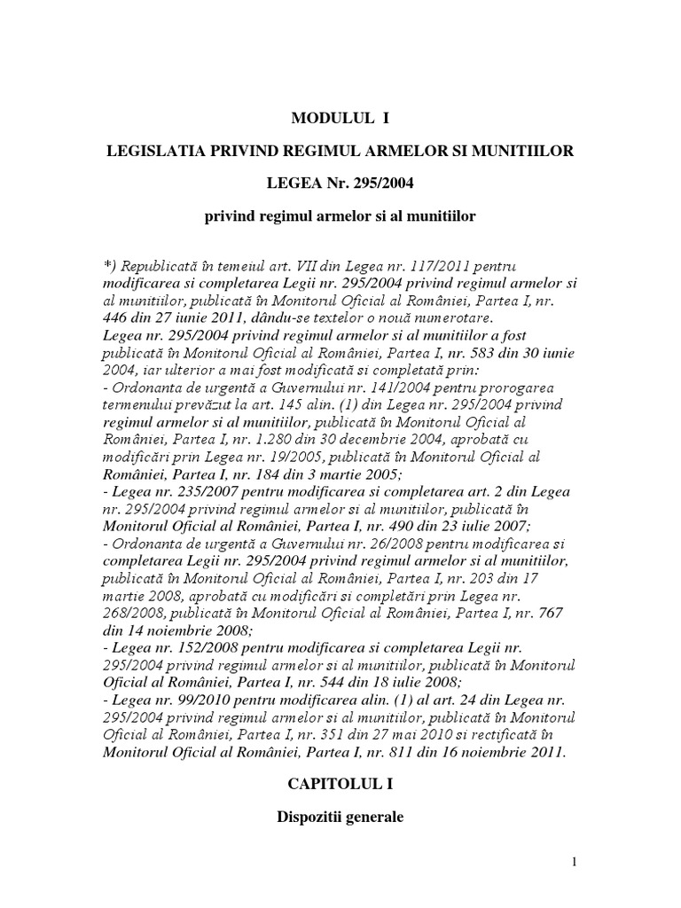 Legea Nr 295 2004 Privind Regimul Armelor Si Al Munitiilor Actualizata La 21 07 2008