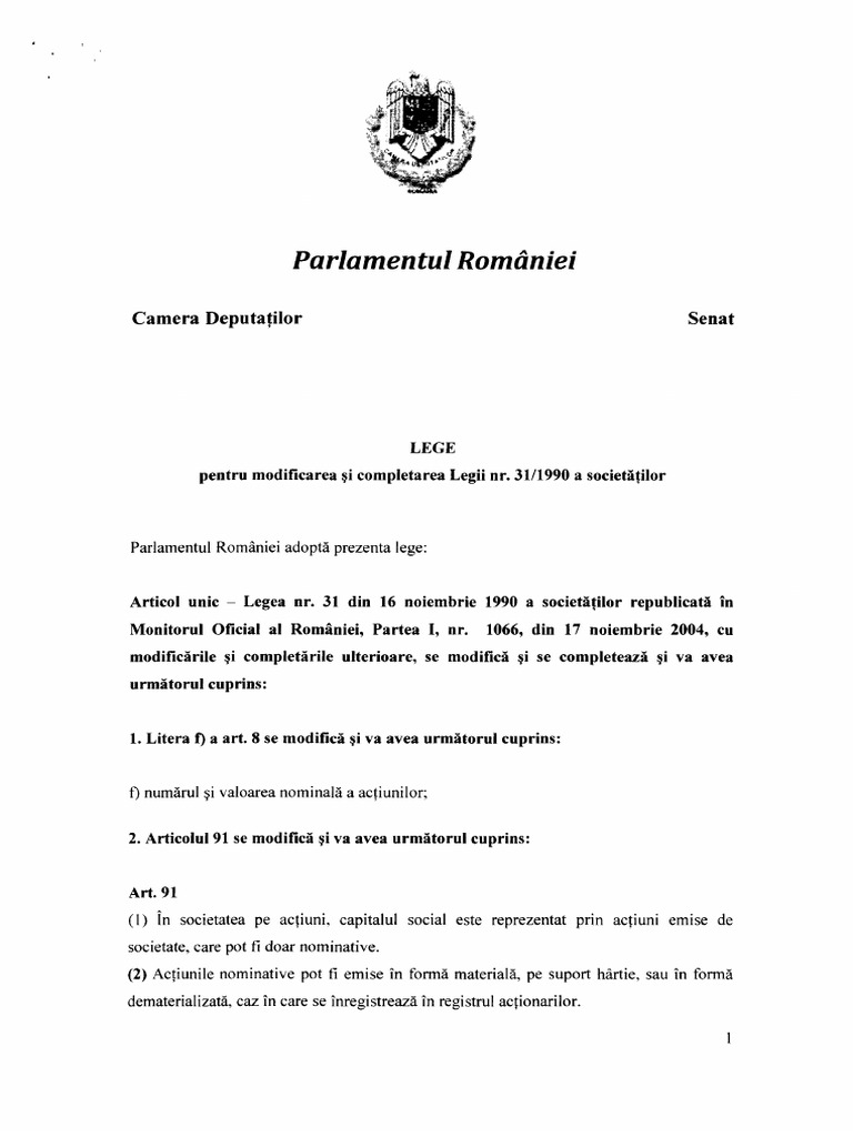 Legea 31 1990 Republicată Privind Societăţile Comerciale