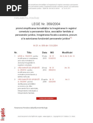 Legea Nr 359 2004 Privind Simplificarea Formalităților La Inregistrarea In Registrul Comerțului A Persoanelor Fizice Asociațiilor Familiale și Persoanelor Juridice Inregistrarea Fiscală A Acestora Precum și La Autorizarea Funcționării Persoanelor