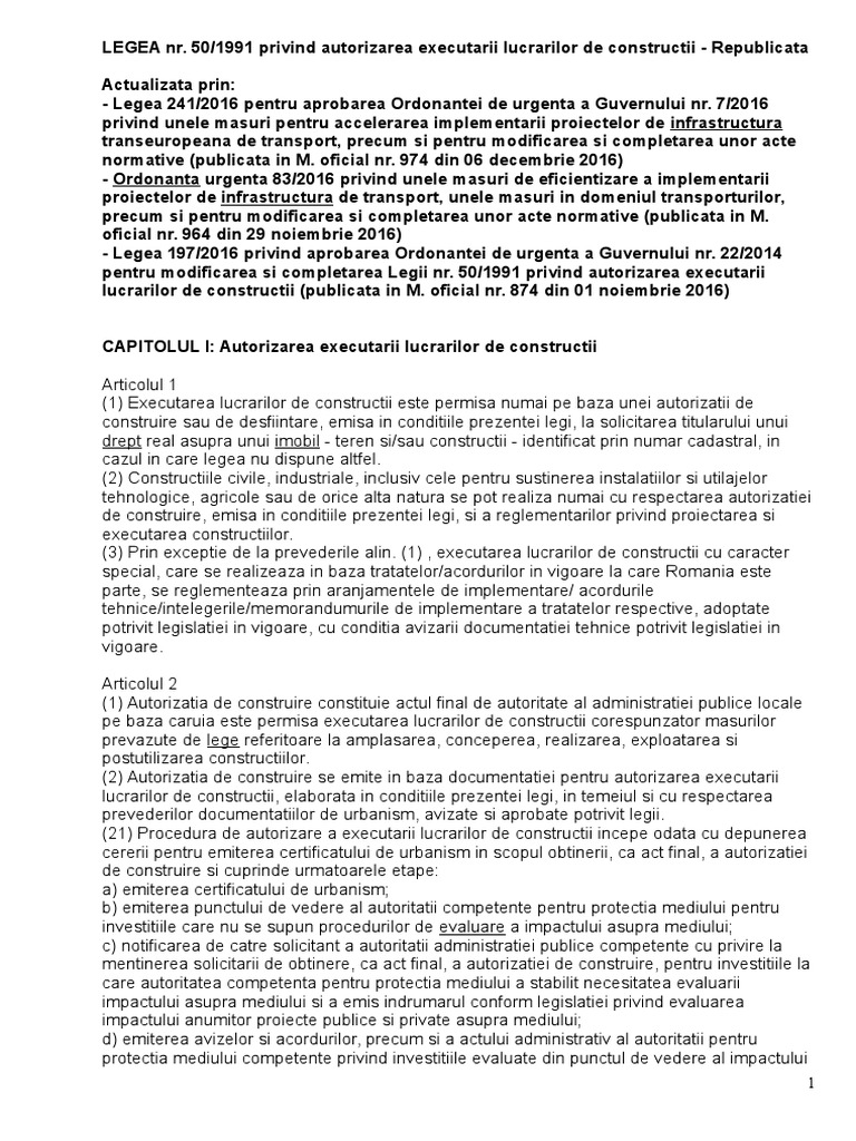 Legea 50 1991 Republicata Si Actualizata 2016