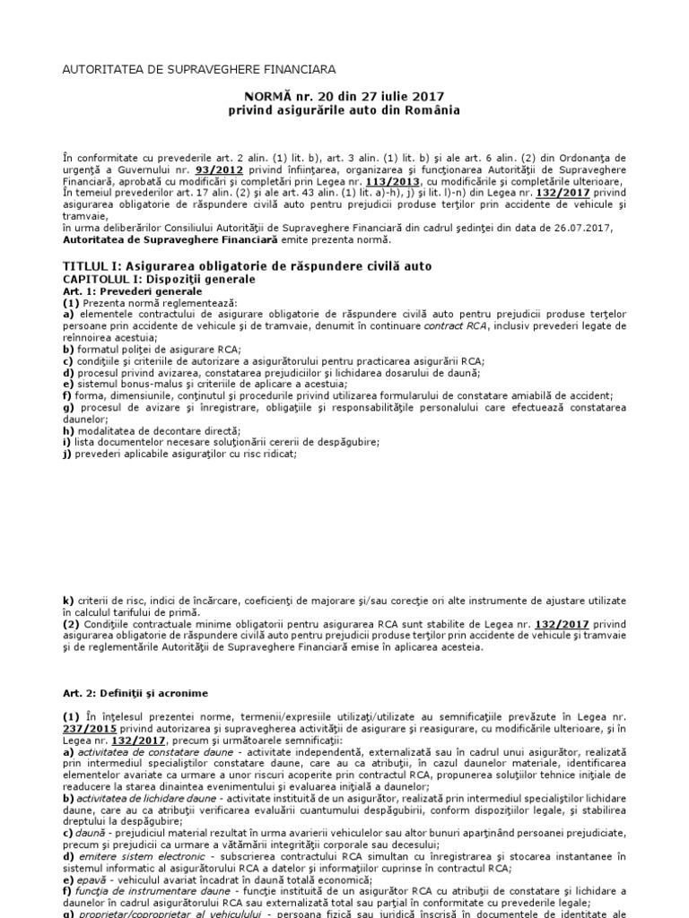 Norma Nr 20 2017 Privind Asigurările Auto Din Romania Actualizat 2020 Lege5 Ro