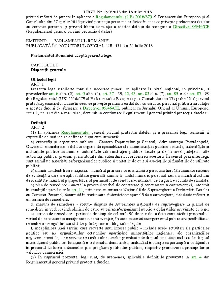 Legea 190 Din 2018 Protecţia Persoanelor Fizice In Ceea Ce Priveste Prelucrarea Datelor Cu Caracter Personal