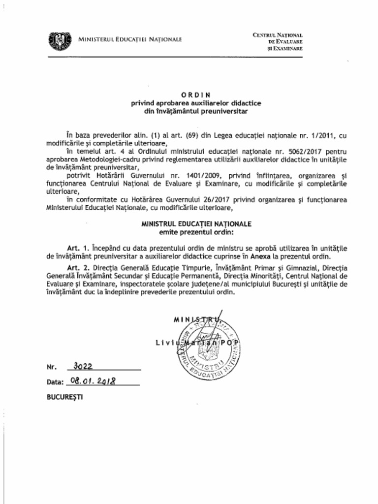 Ministerul Educației Naționale A Reglementat Procedura De Utilizare A Auxiliarelor Didactice In Unitățile De Invățămant Preuniversitar Ministerul Educației și Cercetării