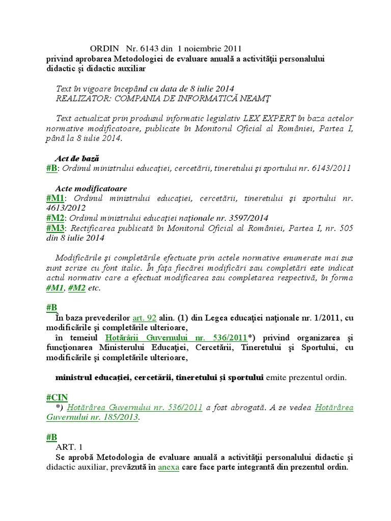 Om 6143 2011 Metodologia De Evaluare Anuala A Personalului Didactic Pdf