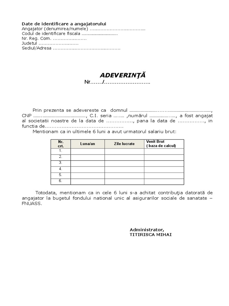 Adeverinta Angajator Venit Brut Ultimele 6 Luni