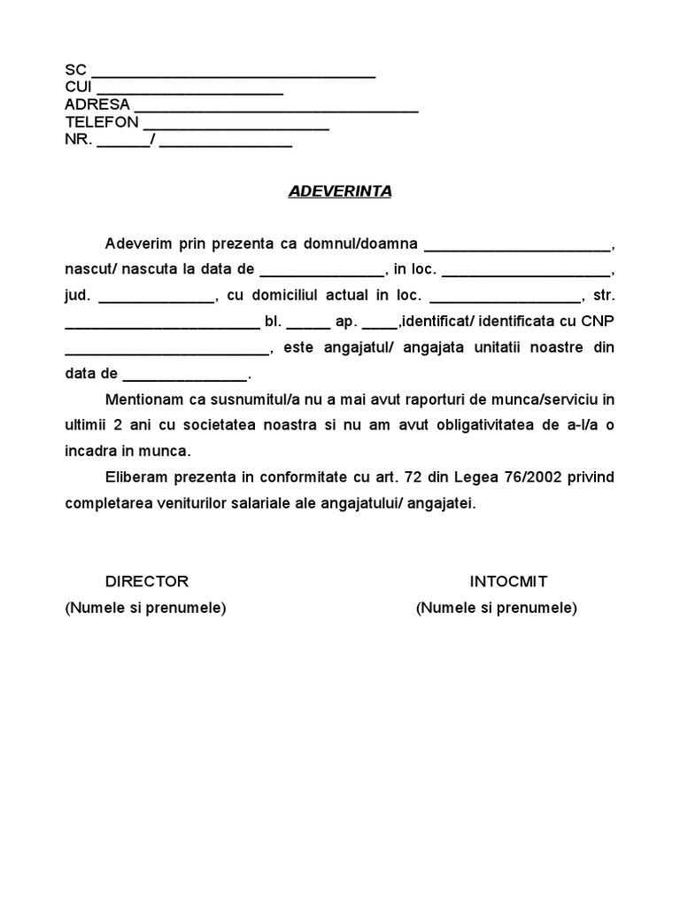 Adeverinta Somaj Pentru Cei 30 Din Indemnizatie