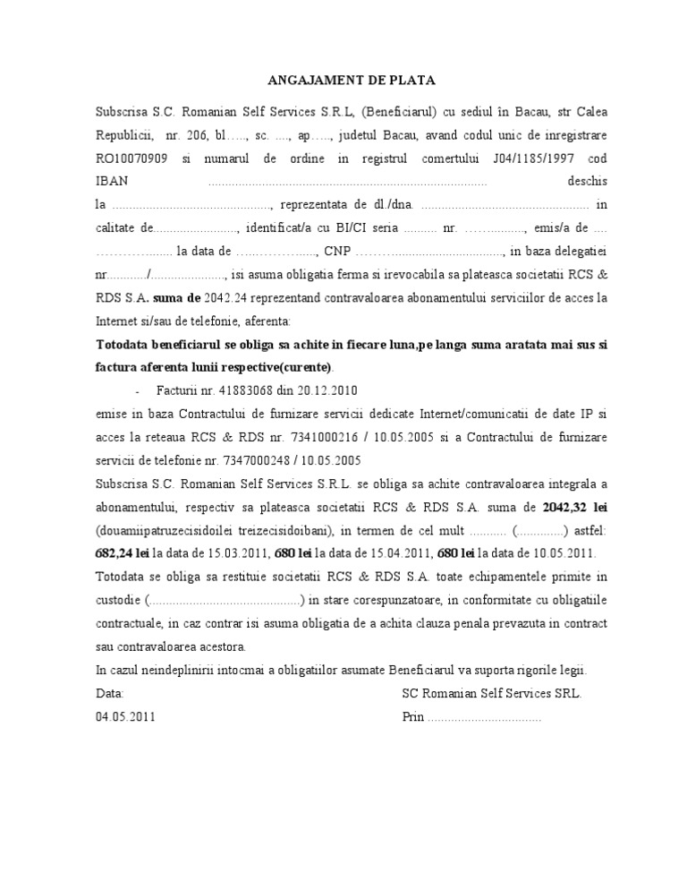 Angajament De Plata Formular Word Formulare Tipizate Gratuite