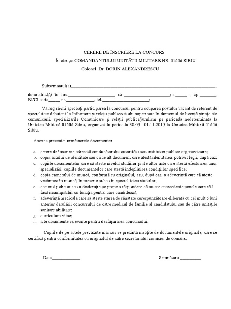 Cerere Inscriere La Concurs