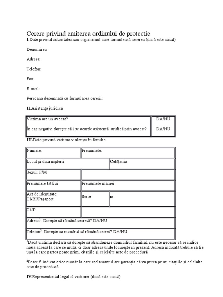 Cerere Ordin Protectie Completata Model