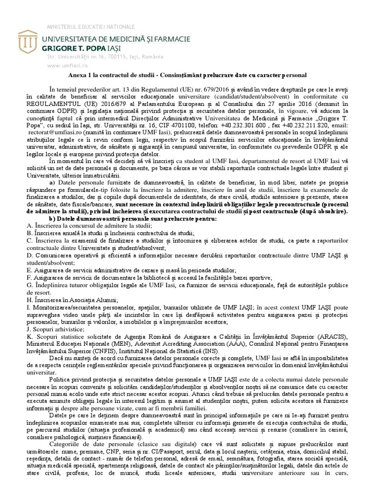 Declaratie De Consimtamant Privind Prelucrarea Datelor Personale Docx