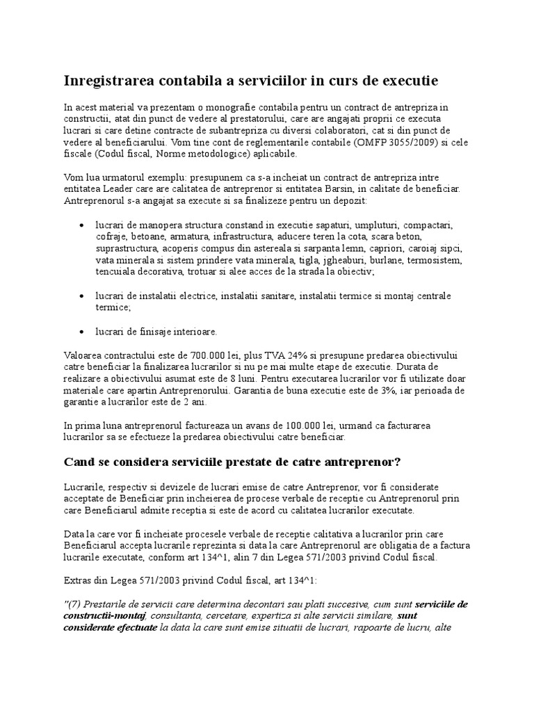 Inregistrarea Contabila A Serviciilor In Curs De Executie Pentru Un Contract De Antrepriza Ce Pasi Trebuie Urmati