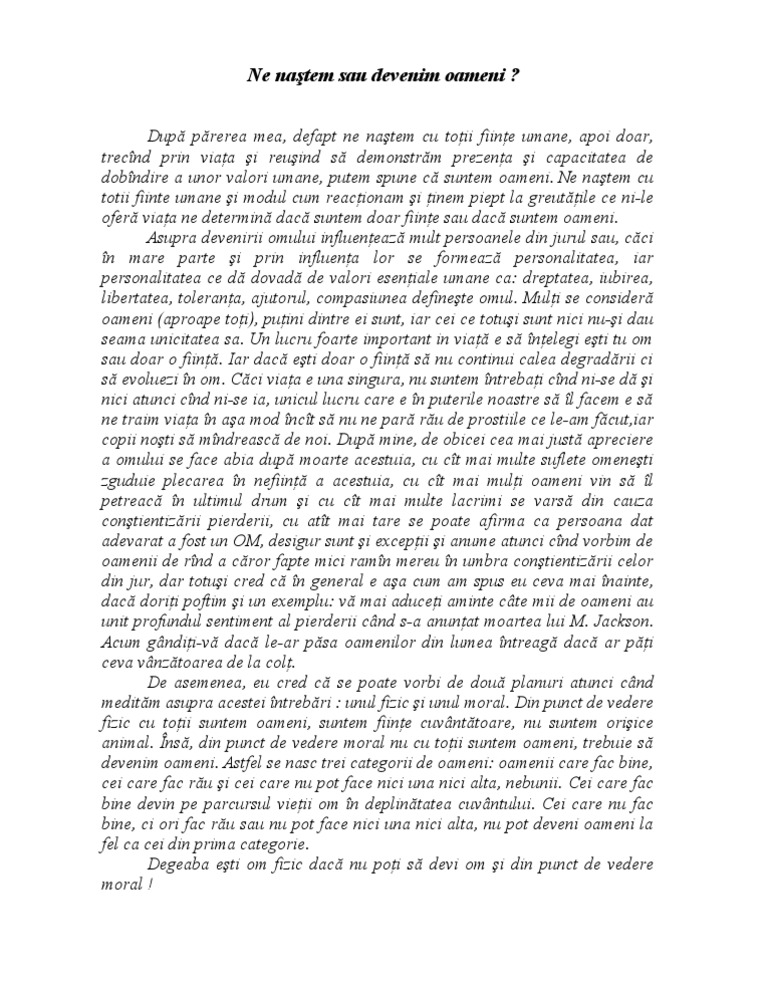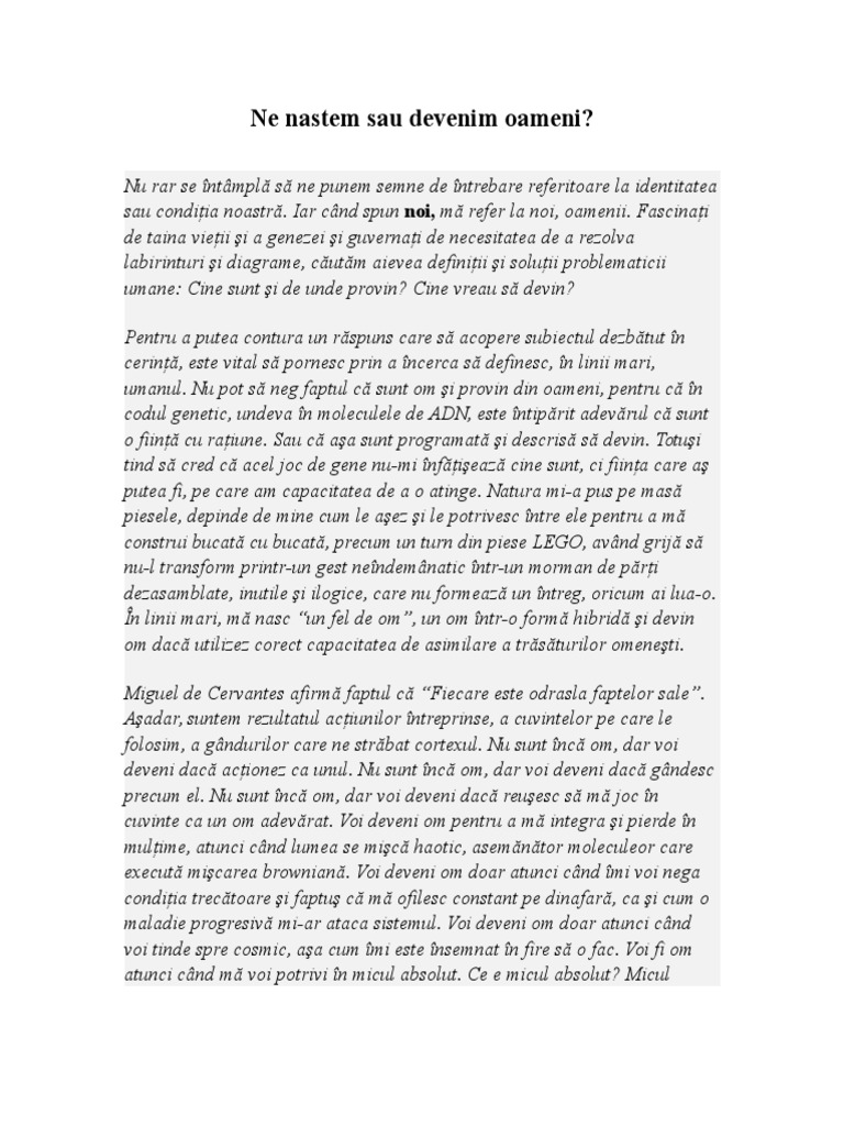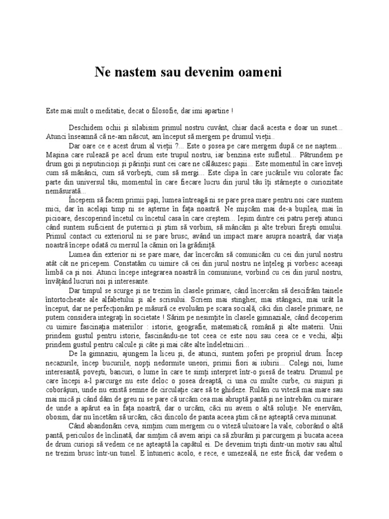 Ne Nastem Sau Devenim Oameni Tema Mea La Filosofie Intreabă Praful