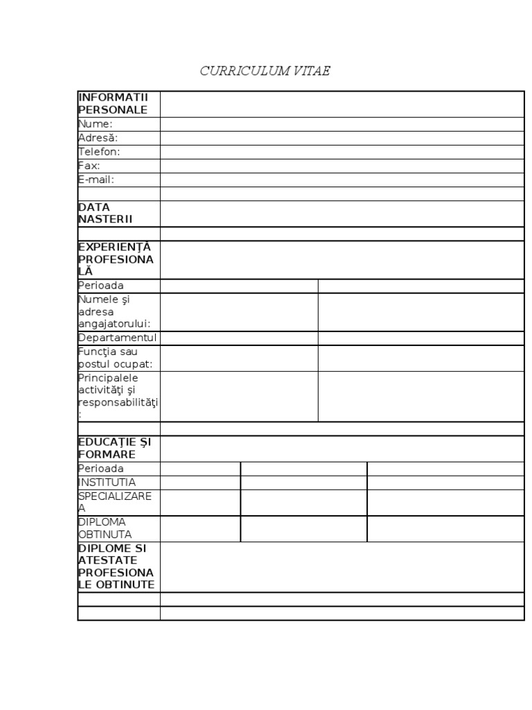 Necompletat Completat Model Cv European In Alb